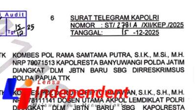 BANYUWANGI_ pensaindependent.com Kapolri kembali melakukan rotasi jabatan strategis di tubuh Polri. Melalui Surat Telegram Kapolri Nomor ST/2781A/XII/KEP./2025 tertanggal 15 Desember 2025, jabatan Kapolresta Banyuwangi Polda Jawa Timur resmi mengalami pergantian.