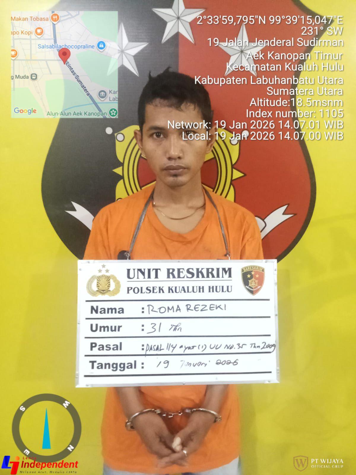 Tim Opsnal Polsek Kualuh hulu kembali ungkap kasus penyalah gunaan Narkotika jenis Sabu-sabu, di Desa Damuli Pekan, kecamatan Kualuh hulu , Labuhanbatu Utara, di bawah pimpinan Kanit Reskrim IBDA RAMADHAN HILAL, S.H, M.H.