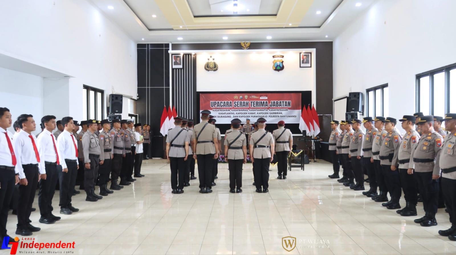 Upacara sertijab berlangsung khidmat di Gedung Rupatama Wira Pratama Polresta Banyuwangi dan dihadiri Wakapolresta AKBP Teguh Priyo Wasono, S.I.K., para pejabat utama (PJU), Kapolsek jajaran, serta seluruh personel Polresta Banyuwangi.