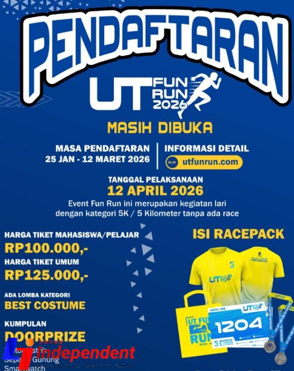 UT RUN 2026 merupakan ajang olahraga yang terbuka untuk pelajar, mahasiswa, dan masyarakat umum sebagai wujud dukungan terhadap gaya hidup sehat, aktif, dan penuh semangat kebersamaan.